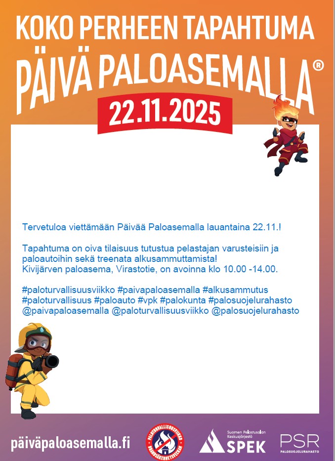 Päiväkoti Nuppukummun maksuton viskarikerho jatkuu torstaisin klo 10-11. Avoin kaikille v. 2017 syntyneille. Lämpimästi tervetuloa kaikki Kivijärven 5-vuotiaat! Lisätietoja päiväkodin numerosta 044 459 7843 / Merja Salmi.